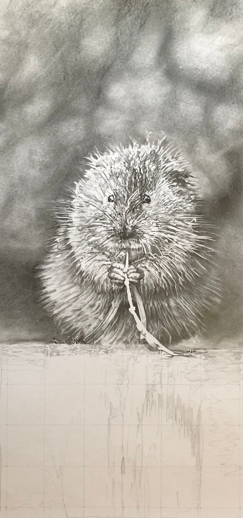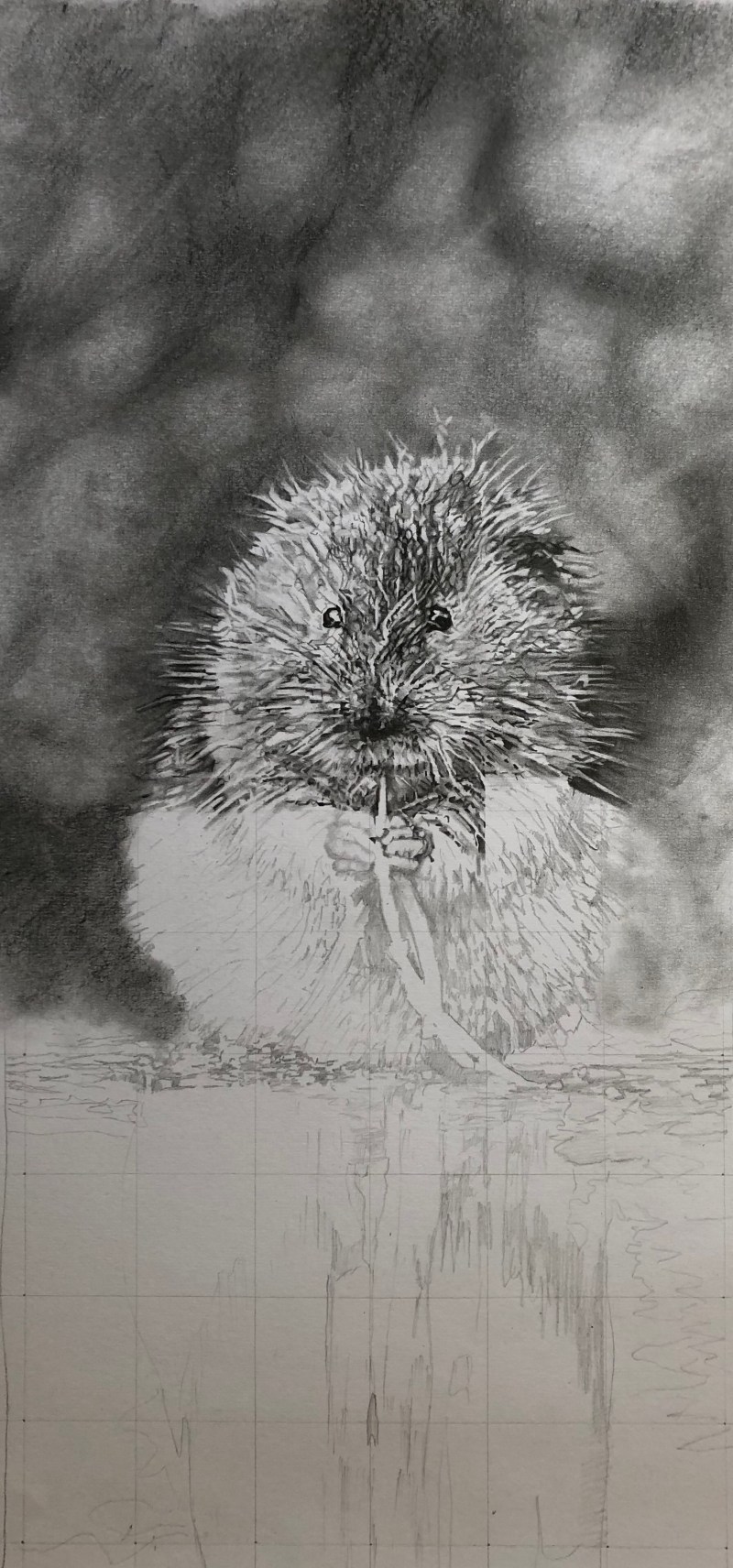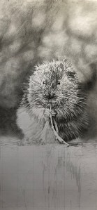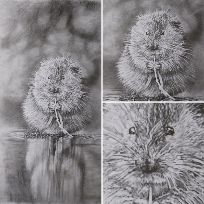 Happy chap tonight! My water vole pencil and graphite image has been selected to appear at the Guildhall Gallery, Stafford. Time to get him in the frame for the big show!
