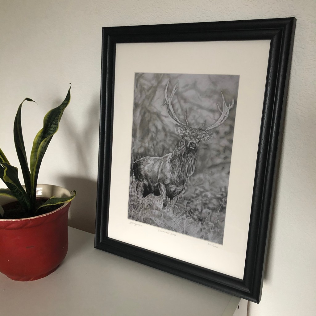 ‘Nibbles’, ‘Prickles’ & ‘Emerging Stag’ 20”x14” framed limited edition prints Last 3 remaining Original price £75.00, reduced to £50.00 each. Buy all 3 for £130.00