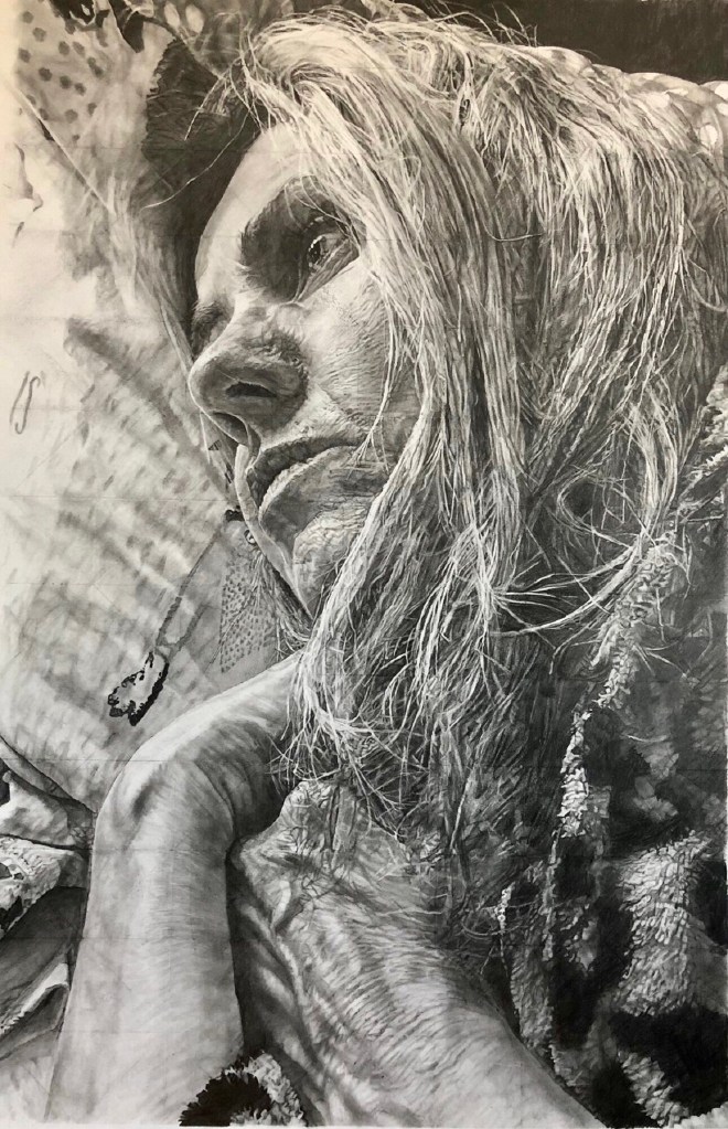 I have a positive mindset which has been constantly refilled with love and support from my family and friends (home and abroad). I’m cheered on by my wonderful Foxlowe Creative Hub studio buddies and drawing tuition clients. Picked up by my headteacher, line manager, department teacher colleagues and teachers and students at Westwood College. Since taking the leap of faith and with encouragement of my family, I decided to follow my passion and become an impoverished loser. Yes, a professional black and white portrait artist. But my grit, determination and dare to dream of London exhibitions has led me into places and people in my hometown that seem to champion me and my ability to persist and perfect my brand of art. My network of business friends and clients in the town I love, Leek, have lifted me from obscurity into the occasional limelight of a London exhibition on the Mall. My mindset is clear and I am driven to follow my passion to draw and create my art.